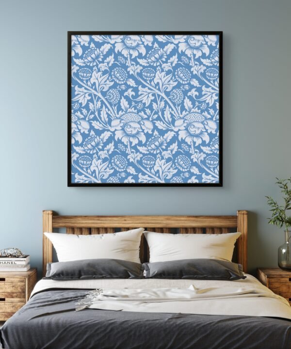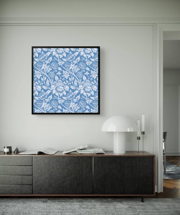 Discover where the garden meets the ocean. The ‘Azure Bloom’ art print is a harmonious blend of two natural wonders. Delicate, ornate flowers and vines appear to be woven from the very substance of the sea, their petals and leaves fading into shades of cerulean, sapphire, and aquamarine. This piece creates a sense of tranquil depth and organic elegance, evoking the feeling of a sun-dappled reef or a secret, underwater meadow.