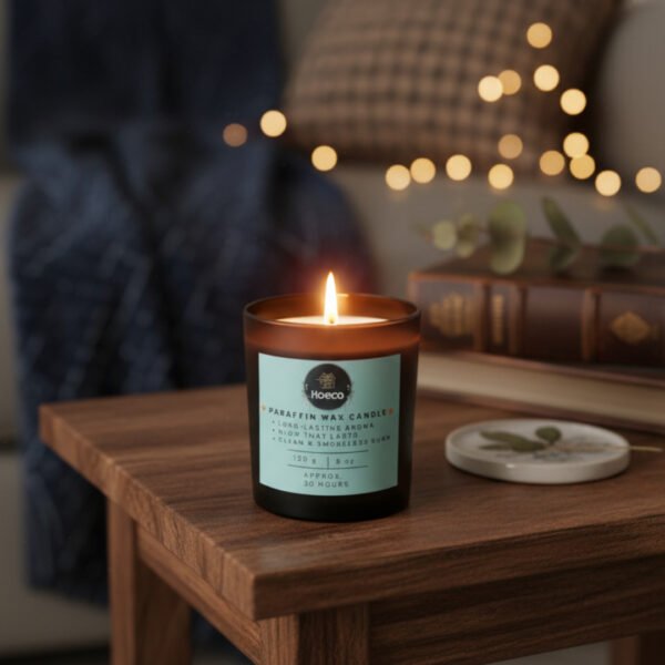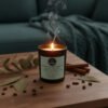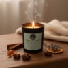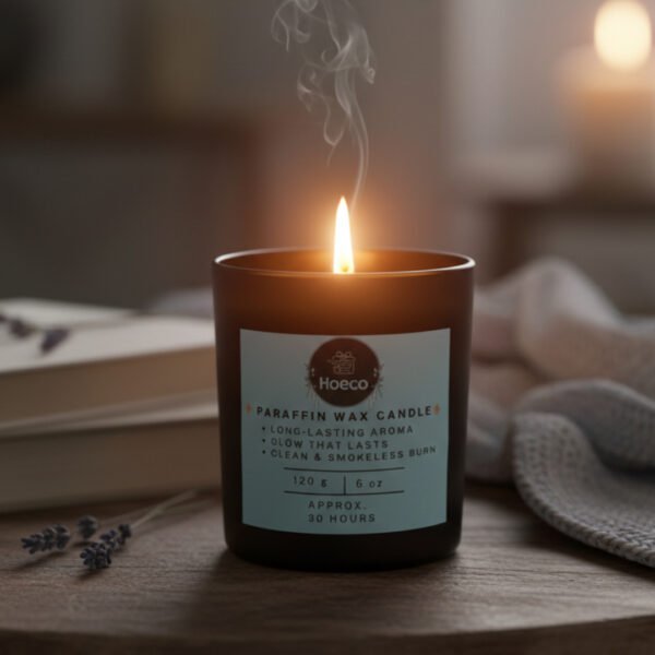 A luxurious lavender-scented candle poured into an elegant black matte glass jar, crafted with high-quality paraffin wax. Its calming aroma and bold minimalistic design make it perfect for modern home décor, relaxation, and gifting.