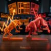 Architectural “Chart” Base: Each figure stands on a unique tiered base that mimics the upward and downward steps of a price chart, adding a modern, geometric layer to the classic animal forms.