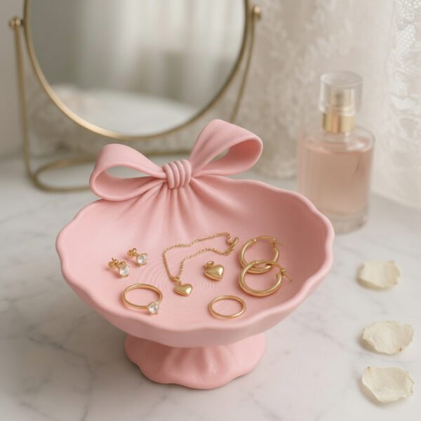 Crafted from high-quality, durable materials with a smooth, polished finish, the Coquette Bow Trinket Bowl is both functional and visually appealing. Its chic design complements modern, minimalist, and elegant interiors, making it a versatile piece for bedrooms, dressing areas, offices, or gift displays.