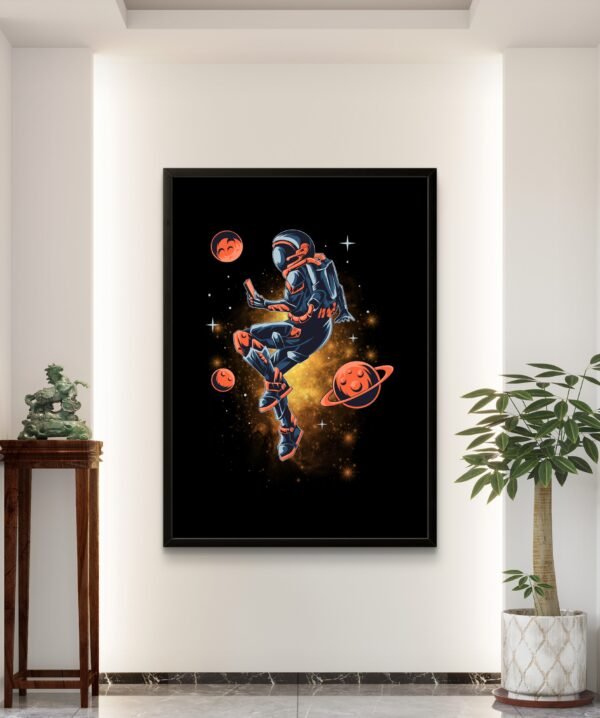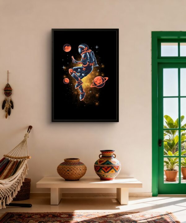 Where humanity meets the cosmos. The Cosmic Connection print features a clean, minimalist depiction of an astronaut cradling a small, luminous planet. This powerful image symbolizes our deep and fragile connection to the universe and to our own world. Its understated style and profound message make it a versatile piece of modern decor, adding a touch of thoughtful serenity and contemporary artistry to any room.