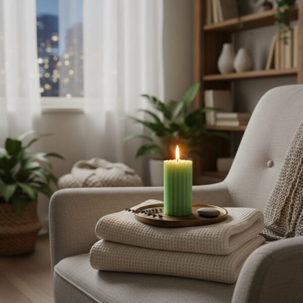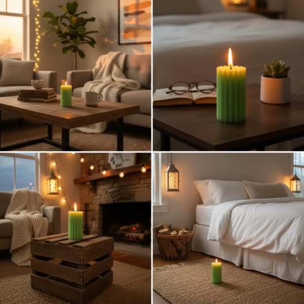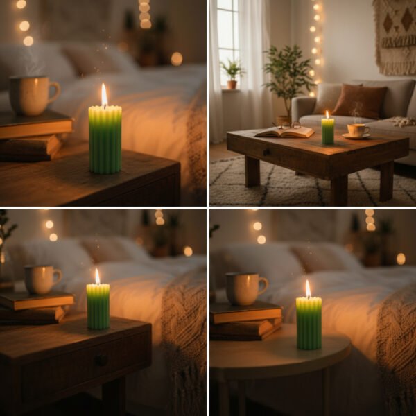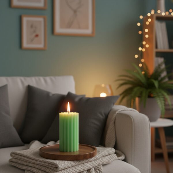 The Hoeco Fresh Green Pillar Candle is hand-poured with premium paraffin wax and infused with a refreshing green lemon fragrance. Its vibrant green color, steady burn, and clean pillar design make it perfect for home décor, aromatherapy, and gifting.