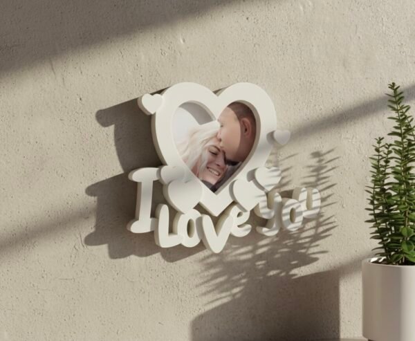 The “I Love You” Heart Photo Frame is a charming and emotional décor piece designed to celebrate love and special memories. Featuring a heart-shaped photo slot with elegant 3D “I Love You” lettering and small heart accents, this frame adds warmth and romance to any space.