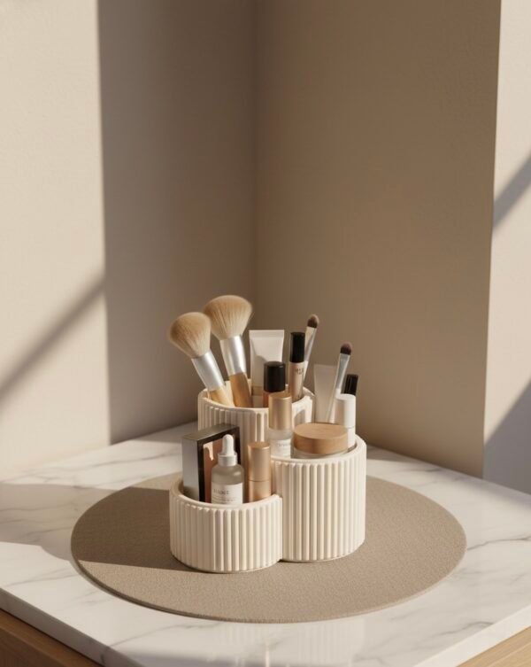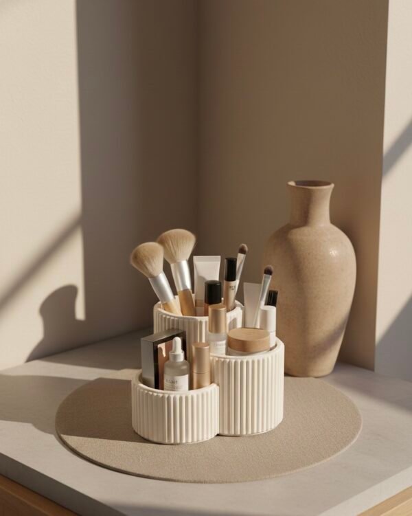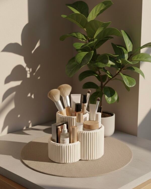 The 3-Piece Makeup & Brush Organizer Set is designed to keep your vanity neat, organized, and visually pleasing. Featuring a modern ribbed texture and soft neutral finish, these organizers perfectly complement minimalist and luxury interiors.