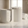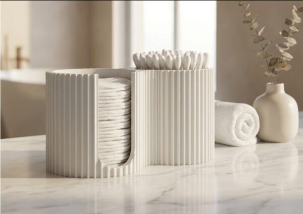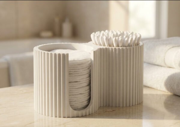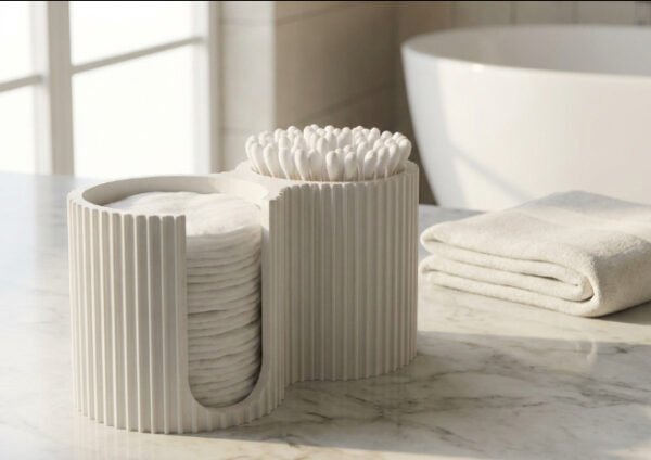 The Modern Bathroom Cotton Pad and Swab Organizer is a stylish and practical storage solution designed to keep everyday essentials neatly organized. Featuring a clean, ribbed design with dual compartments, this organizer is perfect for storing cotton pads, cotton swabs, makeup rounds, or small bathroom accessories.