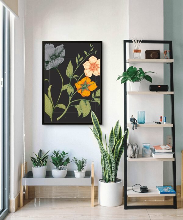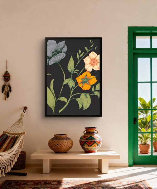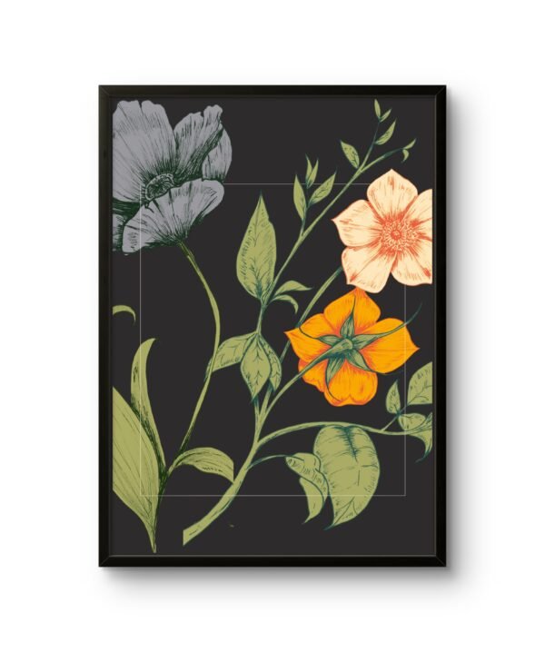Where delicate beauty meets dramatic intensity. The Noir Bloom art print captures a single, exquisite flower illuminated against a deep, velvety black background. This striking contrast elevates the flower’s intricate details, transforming it into a symbol of elegance and resilience. A timeless piece of art that commands attention and adds a touch of sophisticated drama to any modern interior, from the living room to the office.