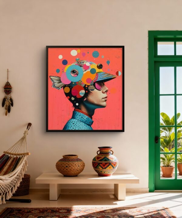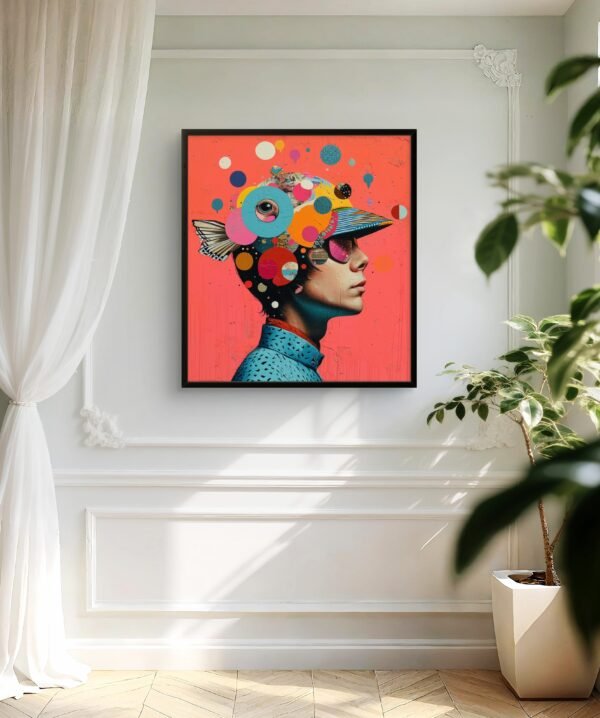 Less is more. The Perched Silhouette art print reduces a charmingly eccentric scene to its most essential forms. Featuring the clean silhouette of a man with a small bird elegantly positioned on his hat, this piece finds the perfect balance between simplicity and narrative. Its minimalist style makes it a versatile piece of decor, adding a touch of quiet sophistication and playful intrigue to any modern interior.
