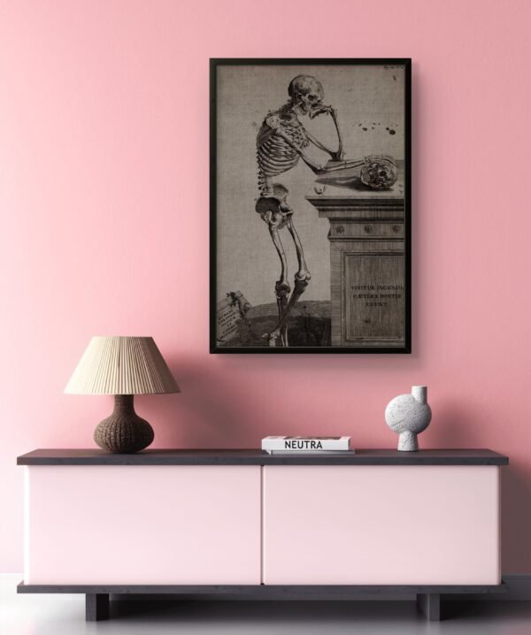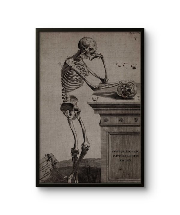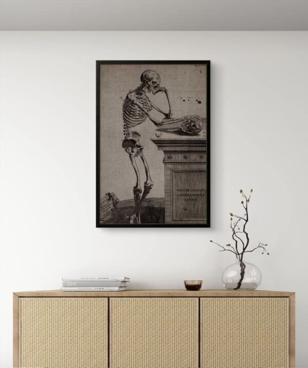 Hold a tangible piece of existential art. The Philosopher’s Rest Sculpture captures a moment of eternal reflection. Crafted with meticulous detail, the seated skeleton is frozen in the iconic “Thinker” pose, but with a deeper narrative gently cradling a second skull in its hands. This piece serves as a stark yet beautiful reminder of the fragility of life and the importance of seeking wisdom. A powerful and conversation-starting object for a desk or bookshelf.