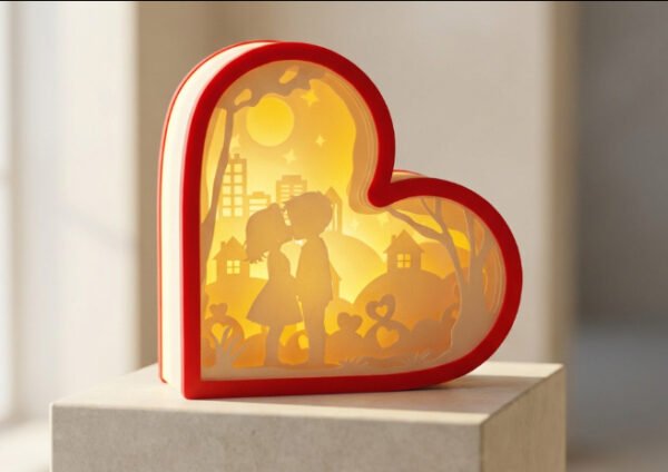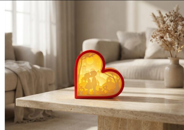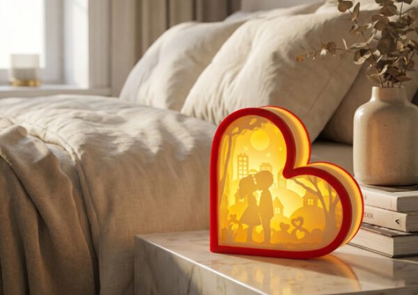 The Romantic Heart Light Decorative Lamp is a beautiful symbol of love and warmth, designed to create a cozy and intimate atmosphere in any space. Featuring a heart-shaped frame with an artistic silhouette scene inside, this decorative light adds a soft glow that enhances bedrooms, living rooms, bedside tables, and gift displays.