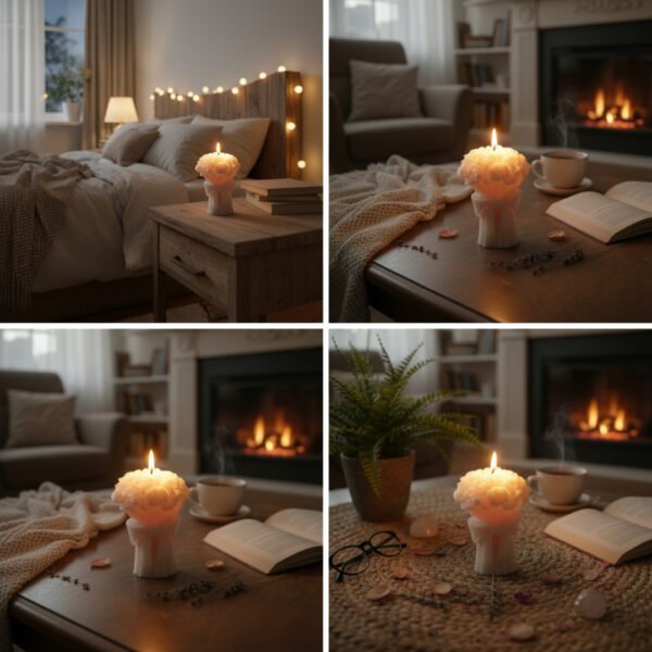 The White Rose Bouquet Candle is hand-poured with premium paraffin wax and infused with a calming lavender fragrance. Its elegant white rose design makes it a beautiful décor piece while adding a soothing aroma to any space. Perfect for gifting, home styling, and creating a relaxing ambience.