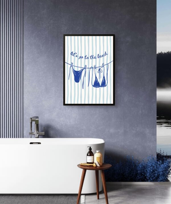Capture the feeling of sun on your skin and sand between your toes. This ‘Seaside Escape’ art print brings the carefree mantra “Let’s go to the beach” to life with a beautiful, vibrant illustration of a perfect shoreline. With rolling waves, a bright sun, and a stretch of sand, this piece is an instant vacation for your mind.