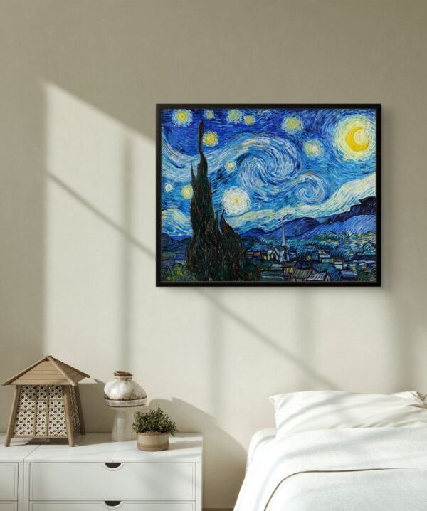 Luminous stars swirl above a sleeping world, evoking wonder and calm.