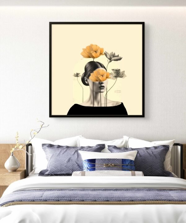 A breathtaking art print of a woman with majestic wings of lush foliage and blooming flowers, symbolizing growth, freedom, and a powerful connection to nature.