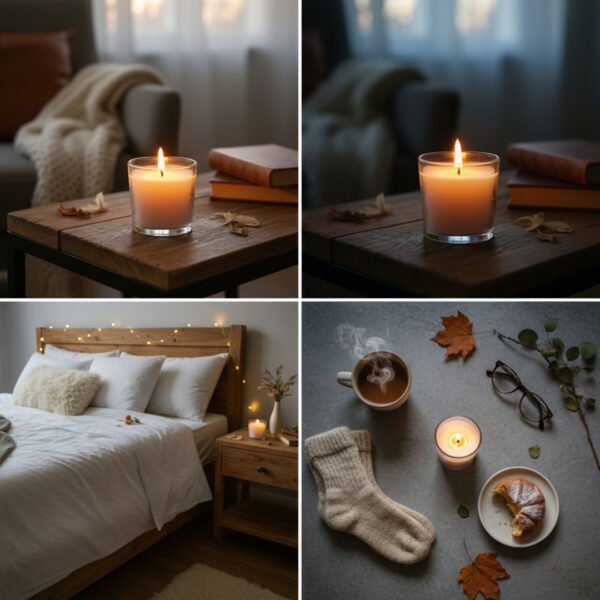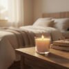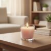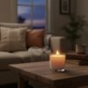 A soothing lavender-scented candle presented in an elegant white glass jar, hand-poured with premium paraffin wax. Its calming aroma and minimalist design make it perfect for home décor, ambience, relaxation, and gifting.